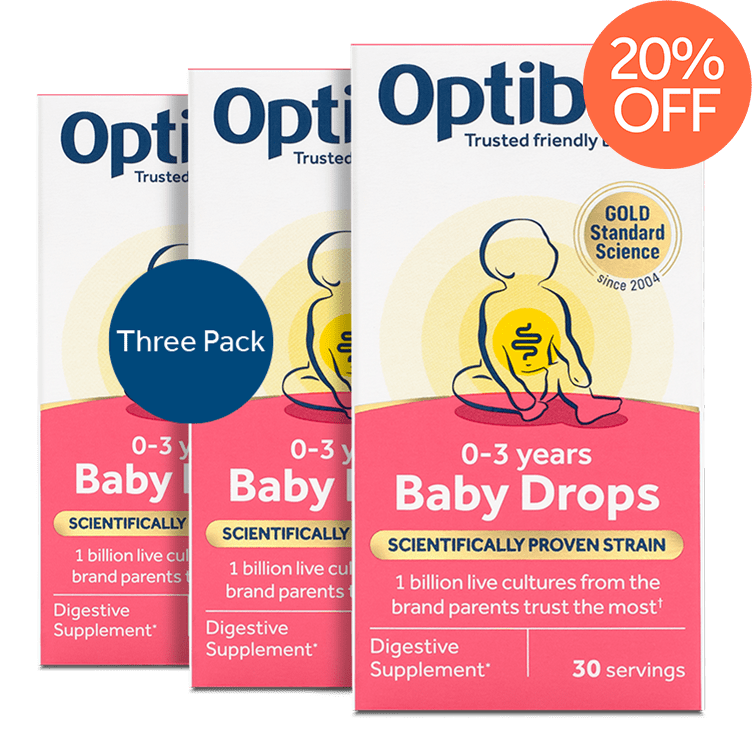 Choose friendly bacteria supplements for your baby which are designed for the infant microbiome1. Optibac Baby Drops supplement contains an award-winning friendly bacteria strain, Bifidobacterium breve M-16V®, tested in over 4000 formula and breastfed newborns2, babies, and young children3.