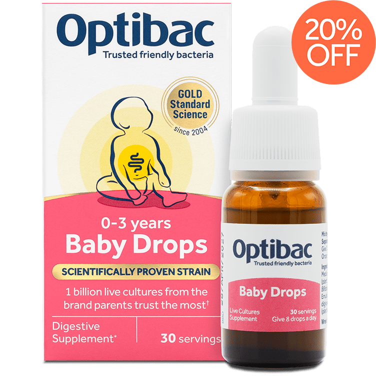 Choose friendly bacteria supplements for your baby which are designed for the infant microbiome1. Optibac Baby Drops supplement contains an award-winning friendly bacteria strain, Bifidobacterium breve M-16V®, tested in over 4000 formula and breastfed newborns2, babies, and young children3.